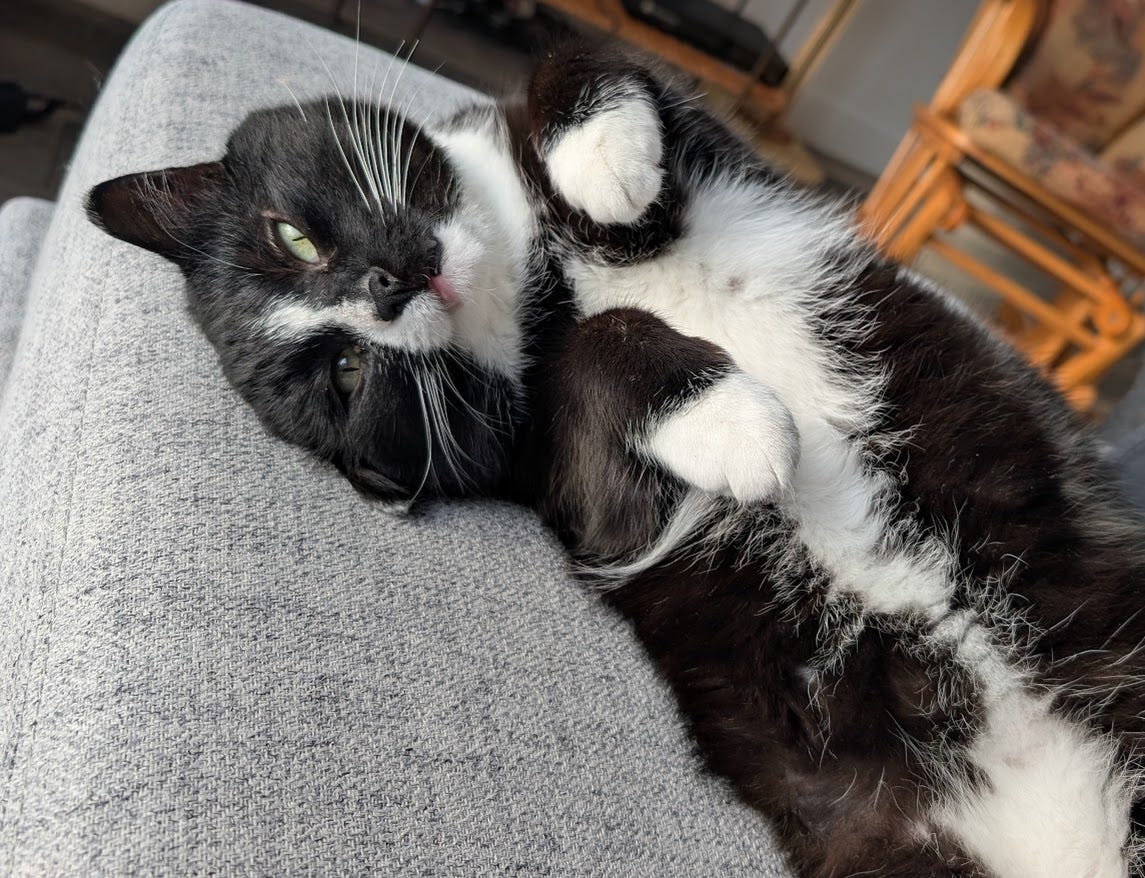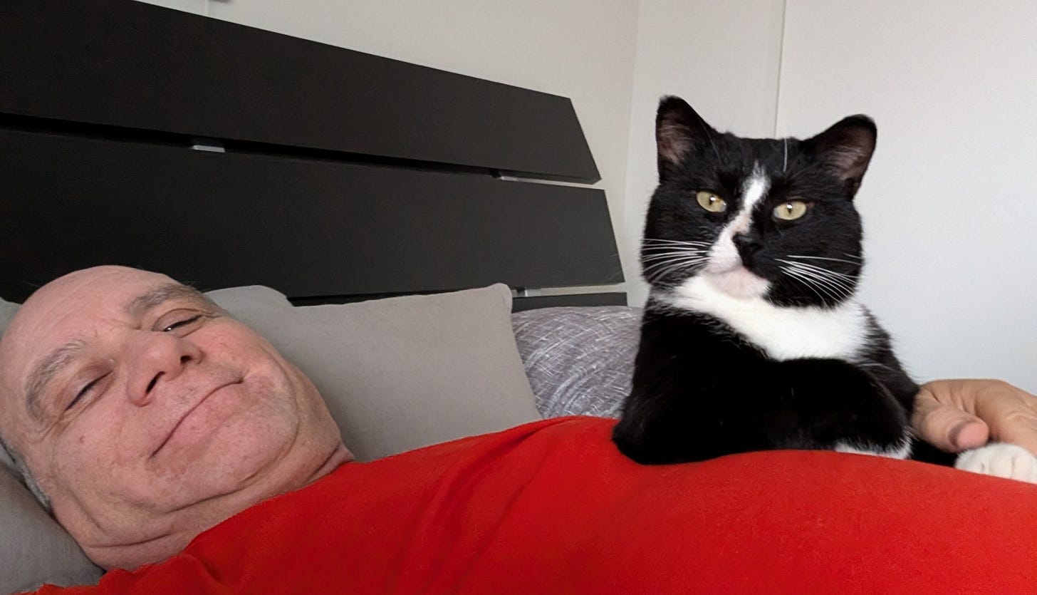 Je n'ai plus de chat chez moi. Longtemps je me suis demandé si je ne devais pas en reprendre un tant j'aime leur petit caractère, leurs ronrons et leur petite folie. Mais pas maintenant. Si j'ai une maison, j'en prendrai un et il fera sa vie, à visiter ses voisins et les environs, et, il me fera l'honneur de revenir à la maison... pour la pâté et quelques câlins bien mérités !